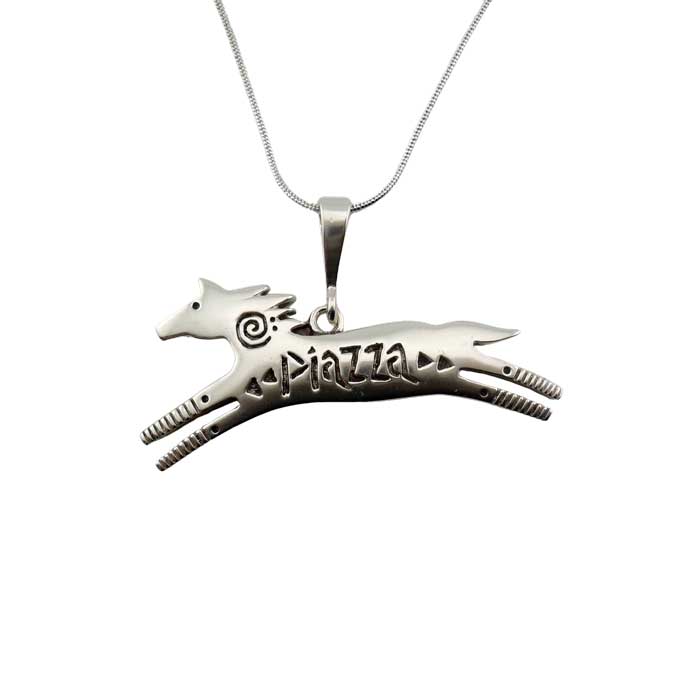 Piazza Horse Pendant measures approximately 2" hoof to hoof and comes on an 18" Sterling Silver Chain. Strong. Soulful. Unmistakably horse.