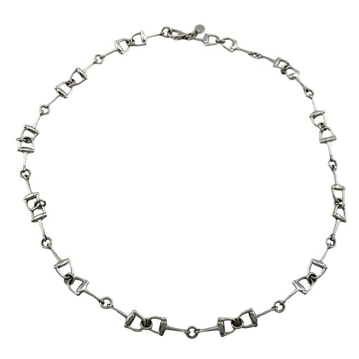 Comfortable design sits beautifully on the neckline this Horse Bit necklace measures 18" and closes with a secure lobster clasp